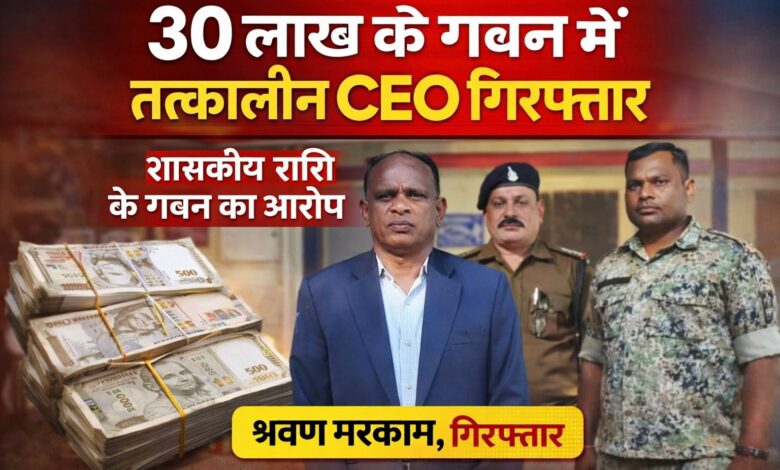 बलरामपुर-वाड्रफनगर || जनपद पंचायत वाड्रफनगर में वर्ष 2013-14 के दौरान हुए लगभग 30 लाख रुपये के शासकीय गबन प्रकरण में पुलिस ने बड़ी कार्रवाई करते हुए तत्कालीन मुख्य कार्यपालन अधिकारी (CEO) श्रवण मरकाम को गिरफ्तार कर न्यायिक हिरासत में भेज दिया है। लंबे समय से फरार चल रहे आरोपी को वाड्रफनगर पुलिस ने गुप्त सूचना के आधार पर दबिश देकर गिरफ्तार किया।