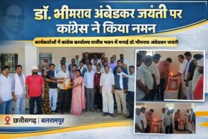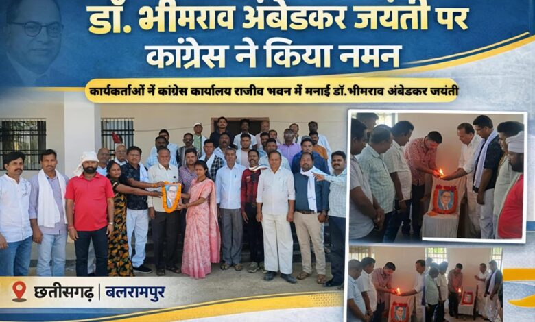छत्तीसगढ़-बलरामपुर || आपको बता दें कि छत्तीसगढ़ के बलरामपुर जिले के “राजीव भवन” कांग्रेस कार्यालय में डॉ. भीमराव अंबेडकर की जयंती गरिमापूर्ण ढंग से मनाई गई। इस अवसर पर कांग्रेस नेताओं एवं कार्यकर्ताओं ने बाबा साहेब के विचारों पर चलनें का संकल्प लिया।